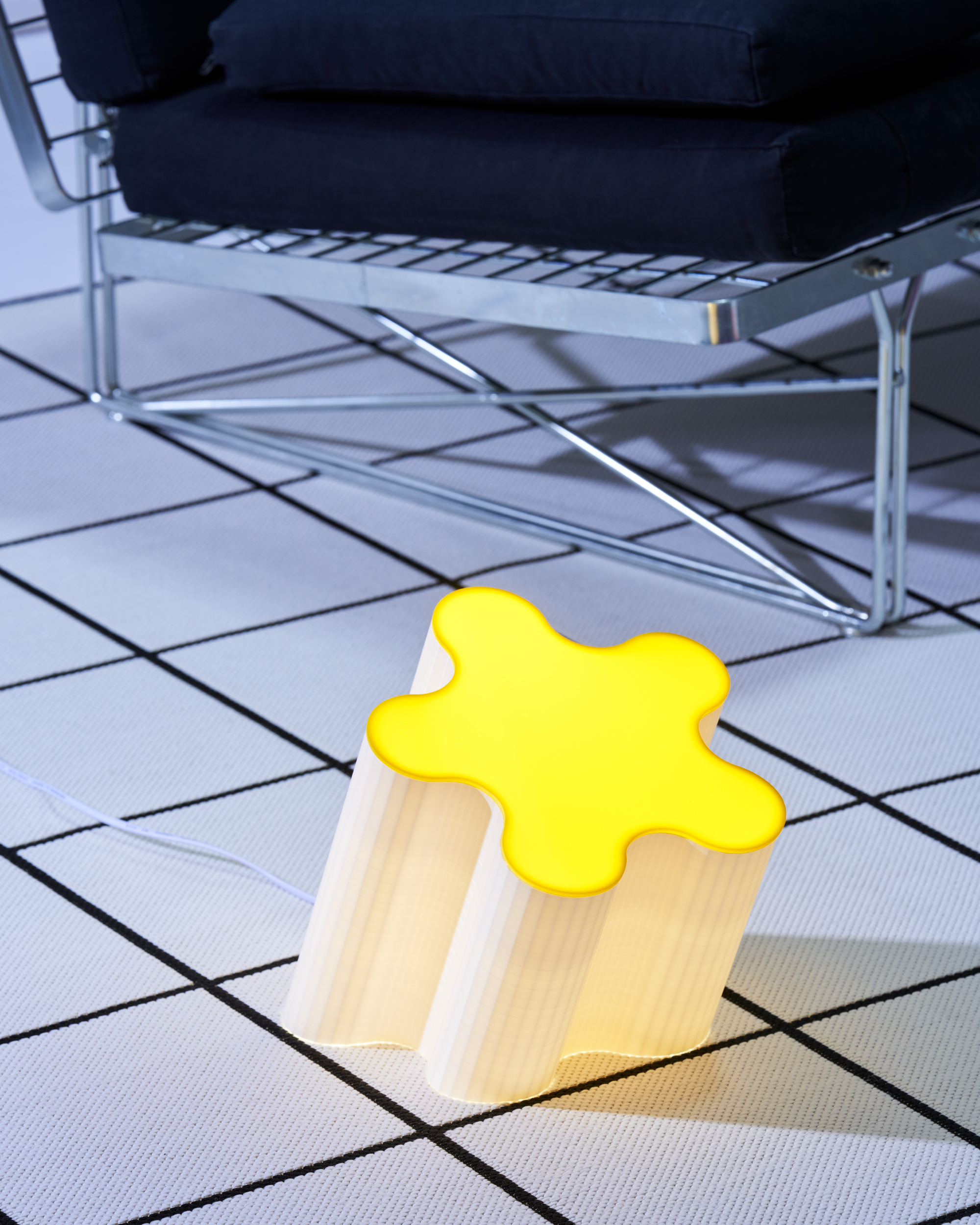 The Sticker Lamp project is based around radical design collective Superstudio’s 1966 “Passiflora” lamp. Using contemporary imagery and manufacturing techniques we have updated the Passiflora for the new age. The lamp’s forms are drawn from a teenage pop star and her pastiche of aesthetic references and brand collaborations. The lamp construction features a 3D printed plastic base and acrylic top that will fill your home with a soft yellow glow.